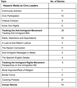 Spanish-language coverage of immigration issues responded to the unique needs of Latinos and immigrants, from informing them of their legal rights under new anti- immigrant bills to mobilizing people to march in immigration rallies.