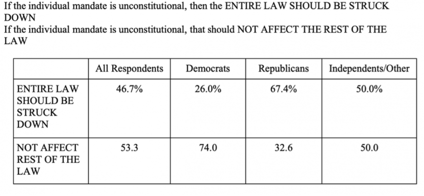 Nevertheless, most respondents (53.3%) stated that even if the individual mandate is unconstitutional, it should not affect the rest of the law.