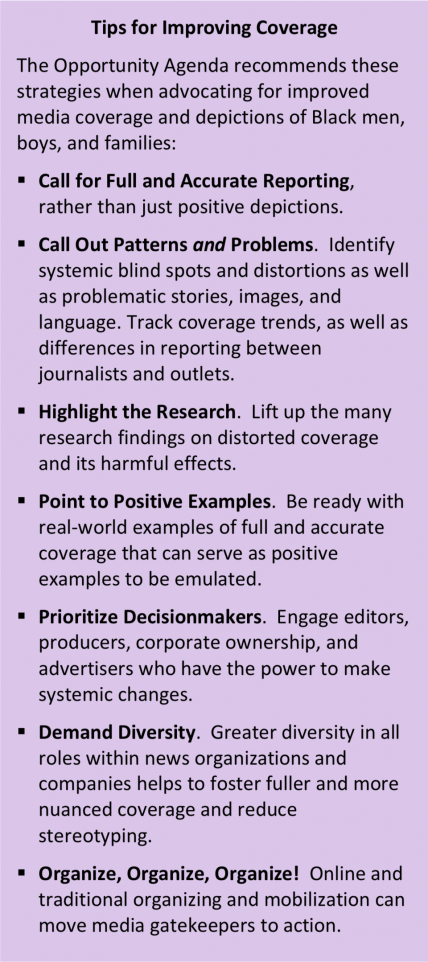 There is much that we can do together to improve media coverage of African-American boys and men, as well as of other communities that are often marginalized or caricatured in media coverage. Here are six tips for making a difference: